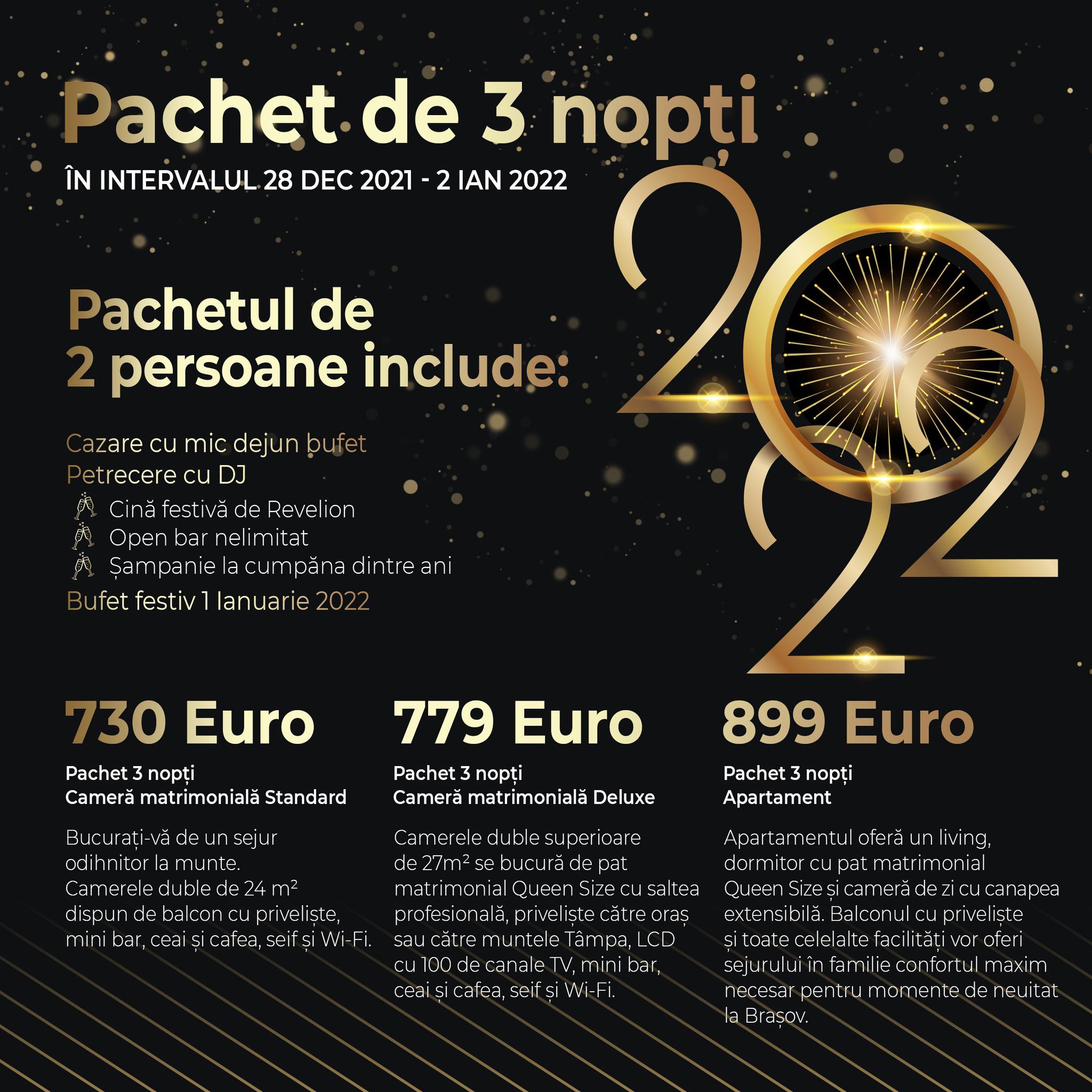 Petrece Revelionul 2022 la munte! Hai la Brașov, la Belfort Hotel!